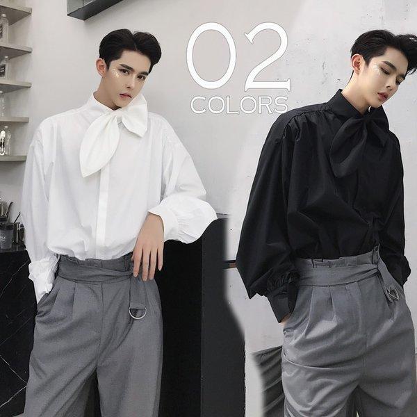 デザインシャツ スカーフ付きシャツ ボタンダウン ロングスリーブ 長袖 メンズ メンズファッション 無地 インナー 韓流 韓国ファッション ストリート系 Ct A145 C150 メンズファッション Bigbangfellas 通販 Yahoo ショッピング